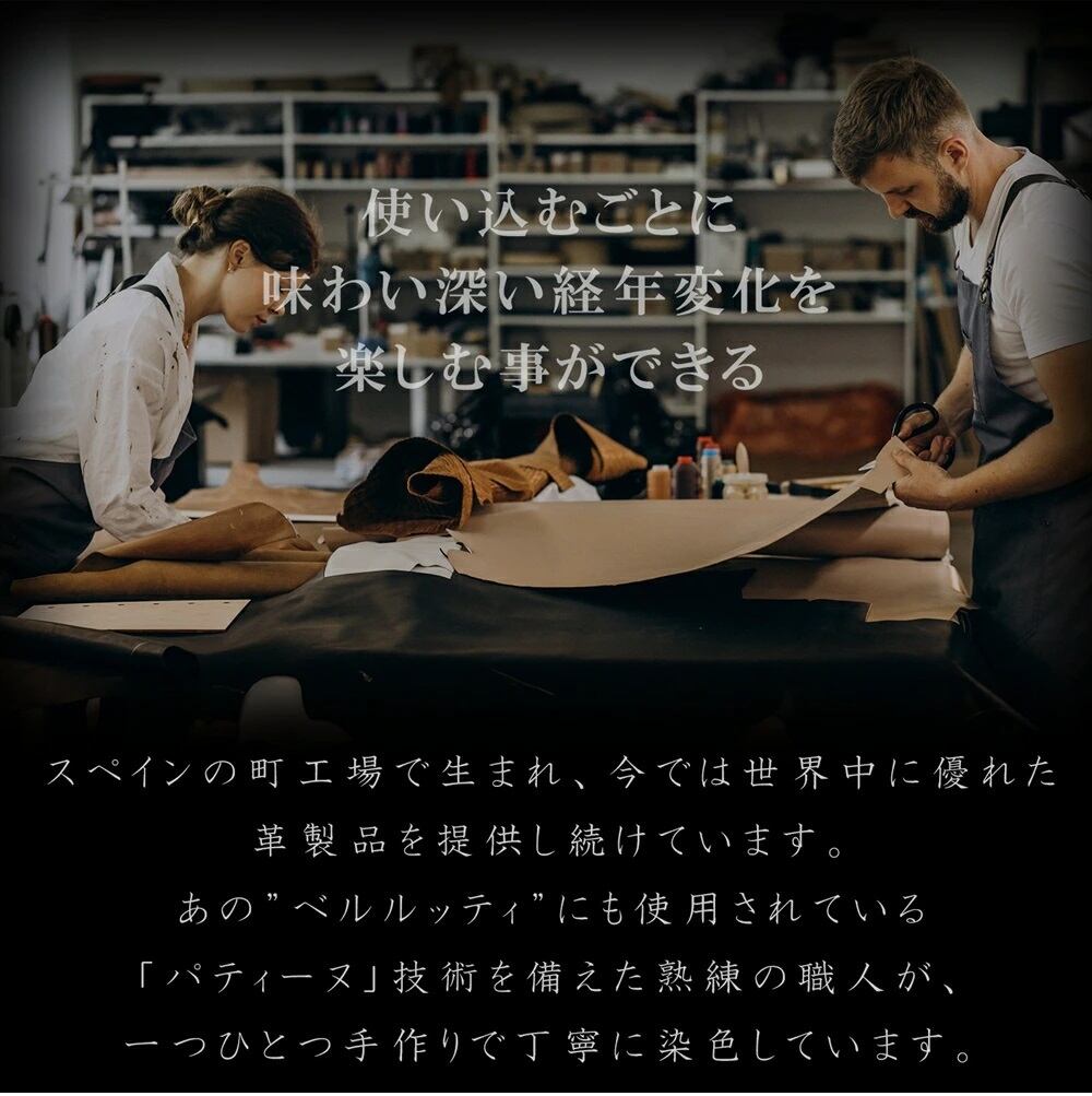 きめ細かい表皮から放たれる、美しく輝くその艶は、パティーヌレザーならではの仕上がりです。