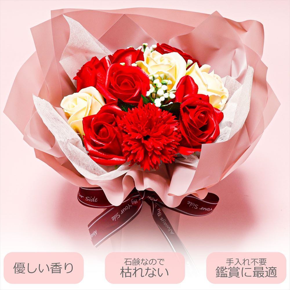 女性スタッフが自信をもって厳選した、ふんわり優しい色で華やかなリップ色のミニソープブーケです。