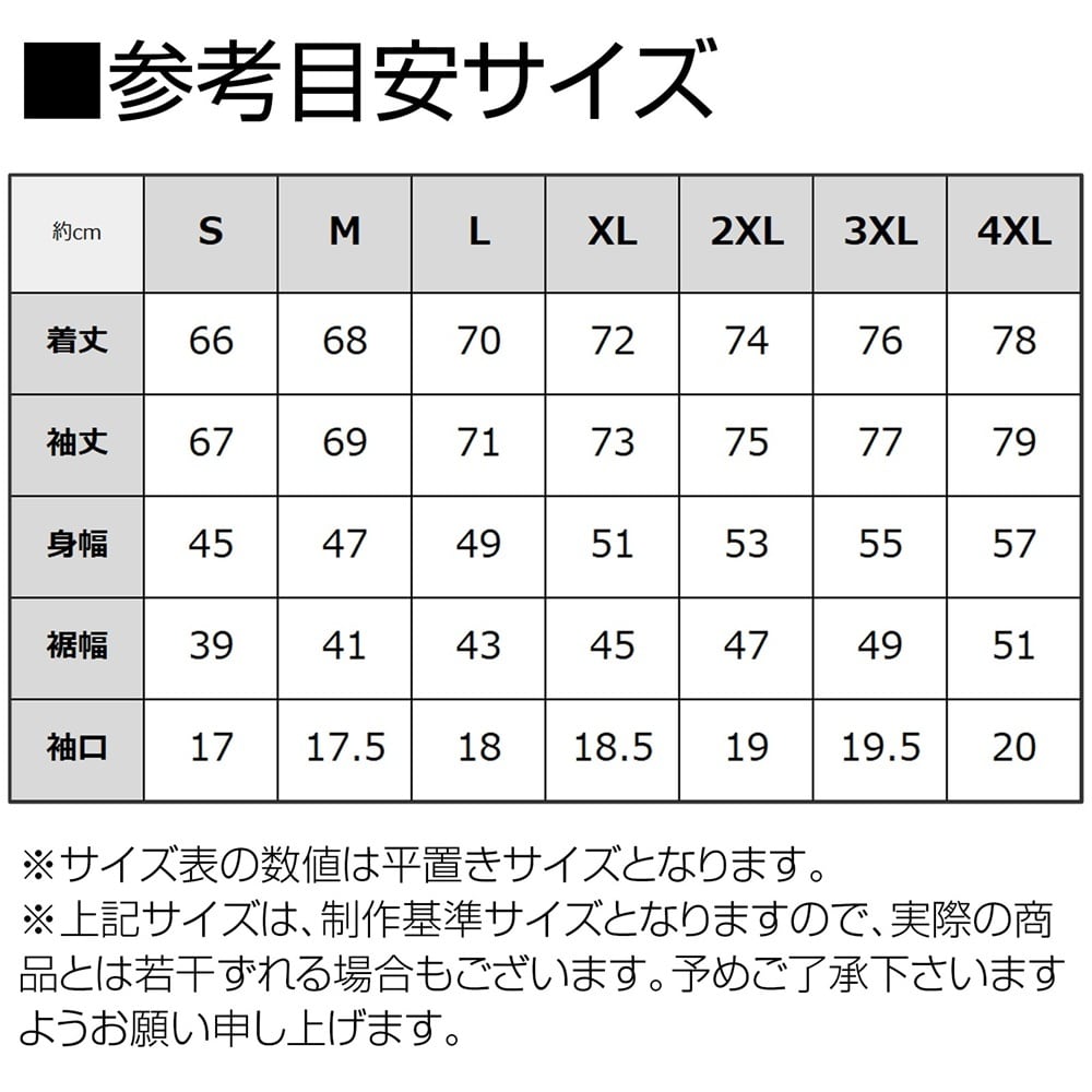 ・4XL 着丈78 袖丈79 身幅57 裾幅51 袖口20